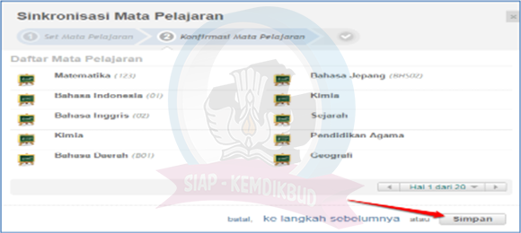 6. Konfirmasi Mata Pelajaran, jika telah sesuai klik Simpan dan Ok.